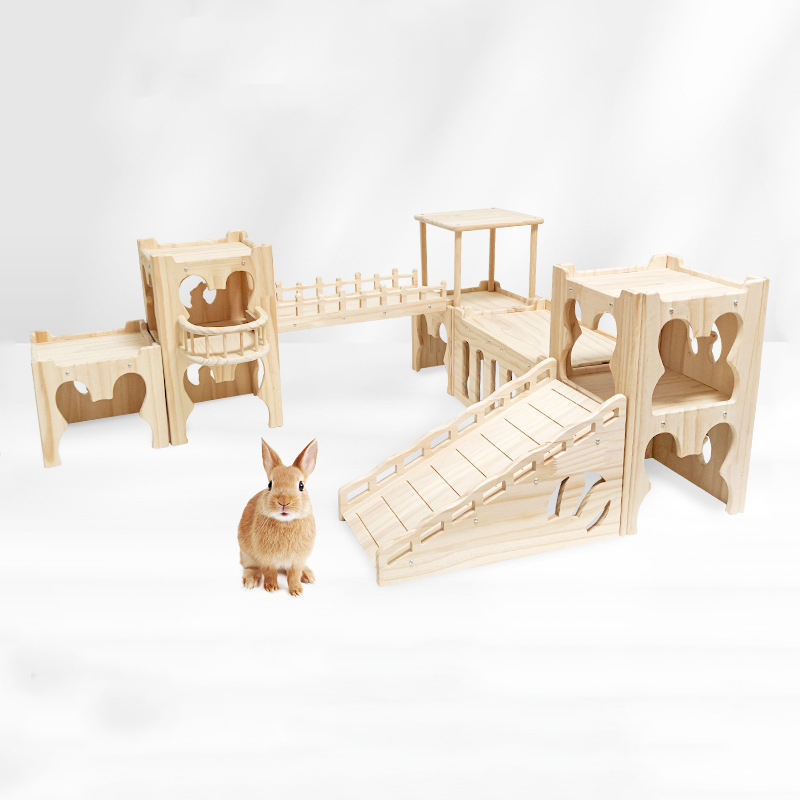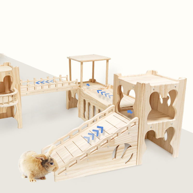 Coniglio castello in legno rimovibile assemblaggio in legno massello di coniglio Play Dodge casa in legno cincillà cincillà casa nascosta