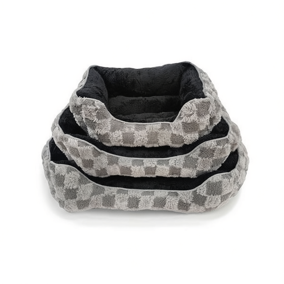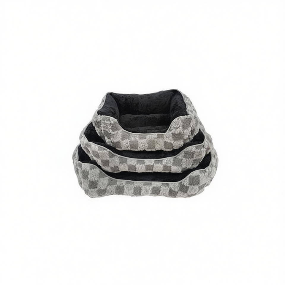 Rabbit Hair Beauty Grid Pet Bed with Arctic Velvet Square Nest Gray Color