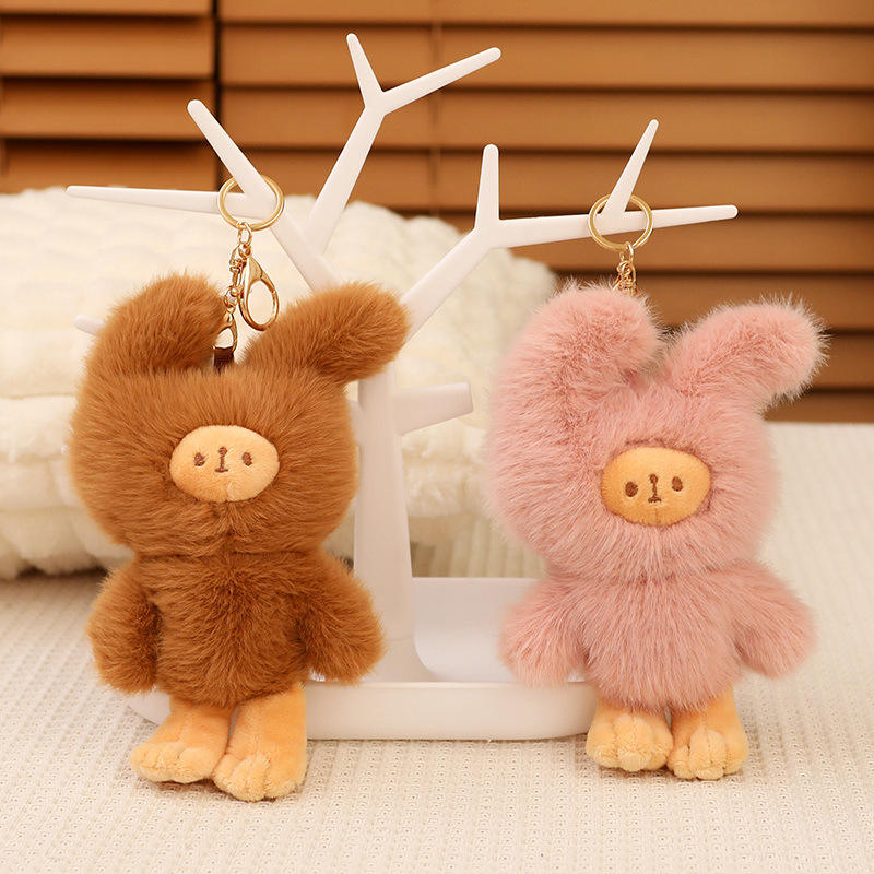 Portachiavi Peluche Coniglio e Orso, Ciondolo Coppia di Conigli Carini, Charm per Zaino Studenti, Bambola, Regalo.