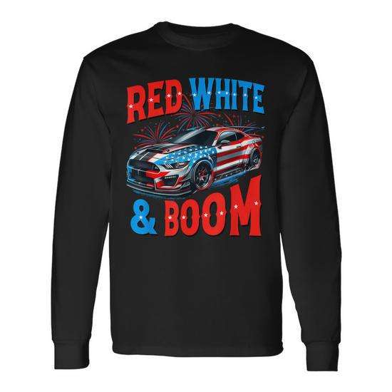 T-shirt a maniche lunghe Racing Car 4th Of July Red White And Boom