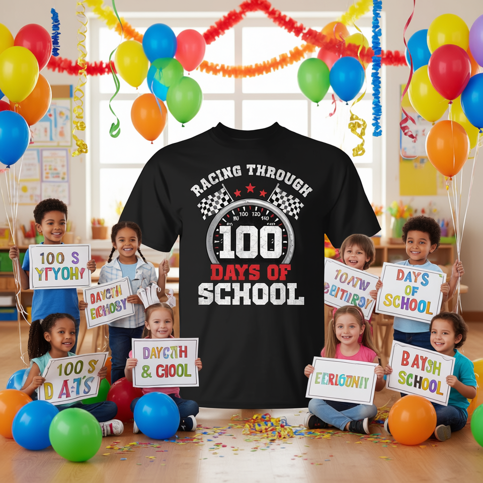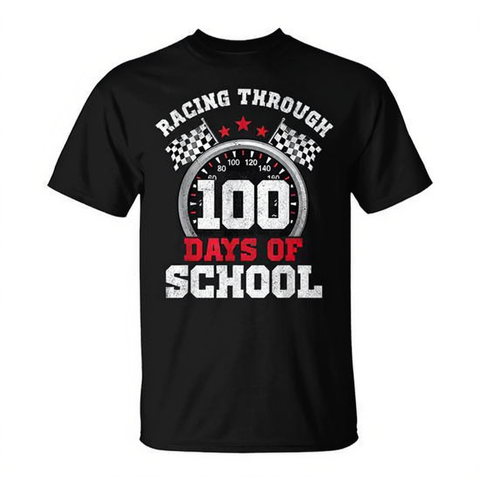 Maglietta Racing Through 100 Days Of School con design di auto da corsa per bambini, per la festa del 100° giorno di scuola