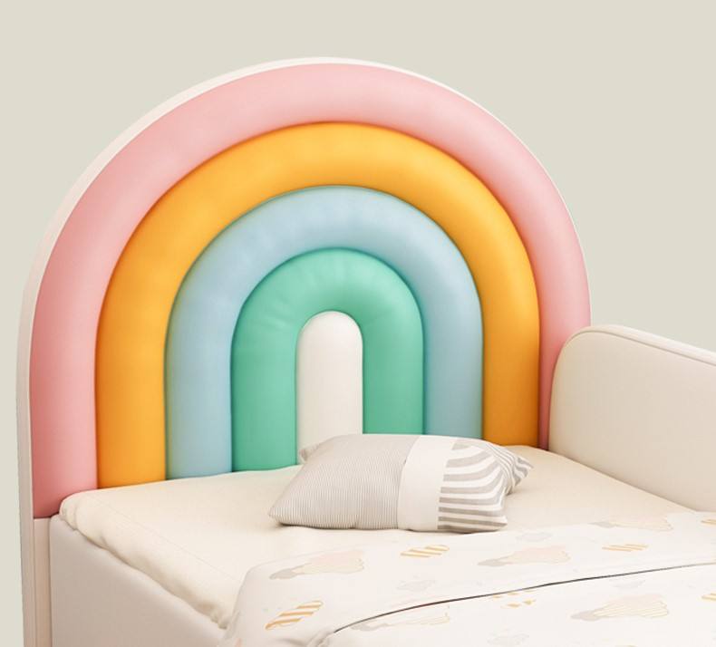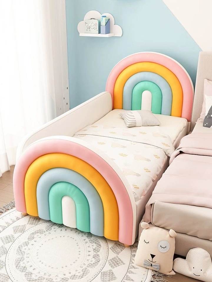 Letto in legno moderno impiombato per bambini arcobaleno con Guardrail letto da principessa per ragazze con ampio letto imbottito morbido per camera da letto