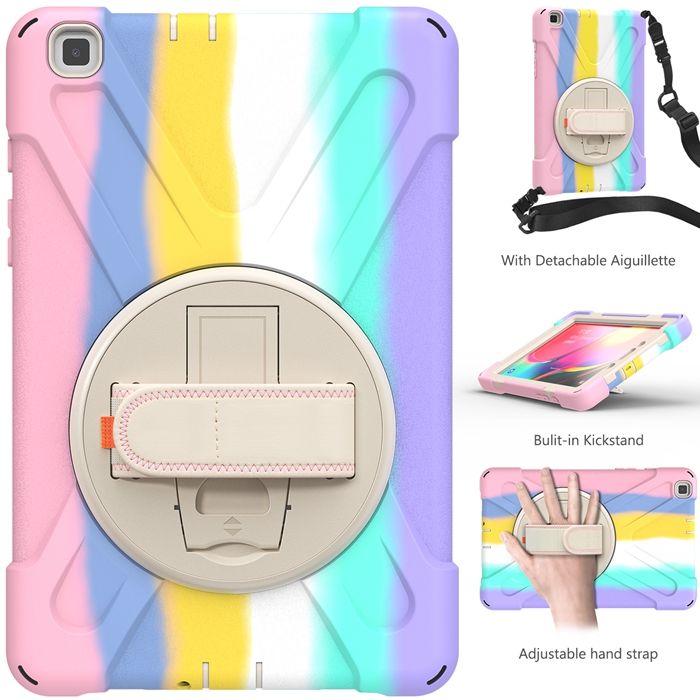 Custodia Arcobaleno Simmetrica per Samsung Galaxy Tab A 8.0 T290 T295 con Tracolla e Supporto Ibrido Rinforzato