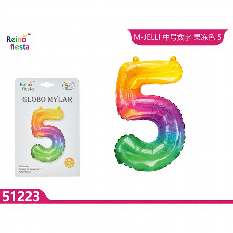 Palloncino in Mylar Stampato in Serigrafia con Numero 5 Colorato Arcobaleno per Capodanno