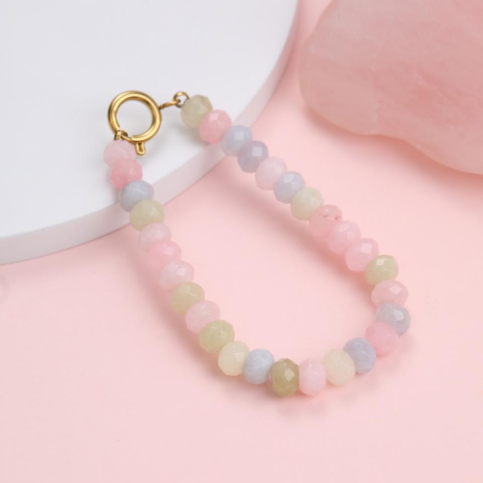 Rainbow Pastel Beaded Heart Pendant Necklace Stainless Steel Buckle Stacked Layered Fashion Jewelry Women Daily Party Gift