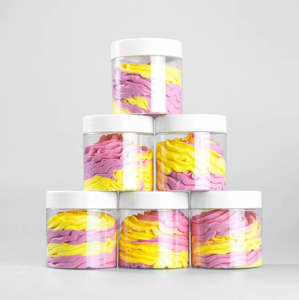 Sapone per il corpo al mango frustato vegano con scrub arcobaleno