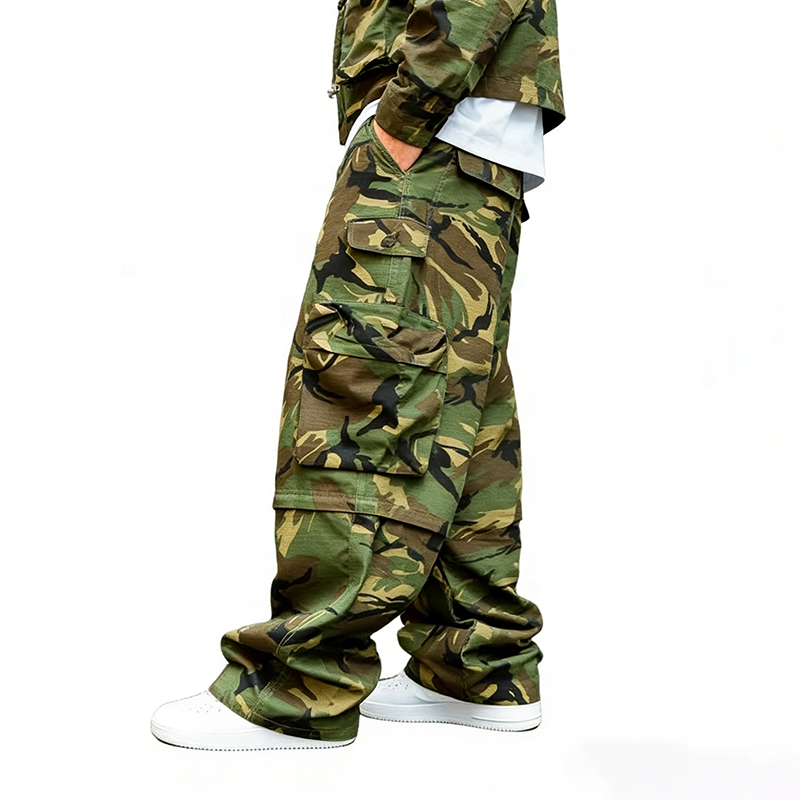 Pantaloni Cargo da Uomo con Stampa Mimetica, Gamba Larga, Multi-tasca, Abbigliamento Streetwear Premium Rainbow Spray