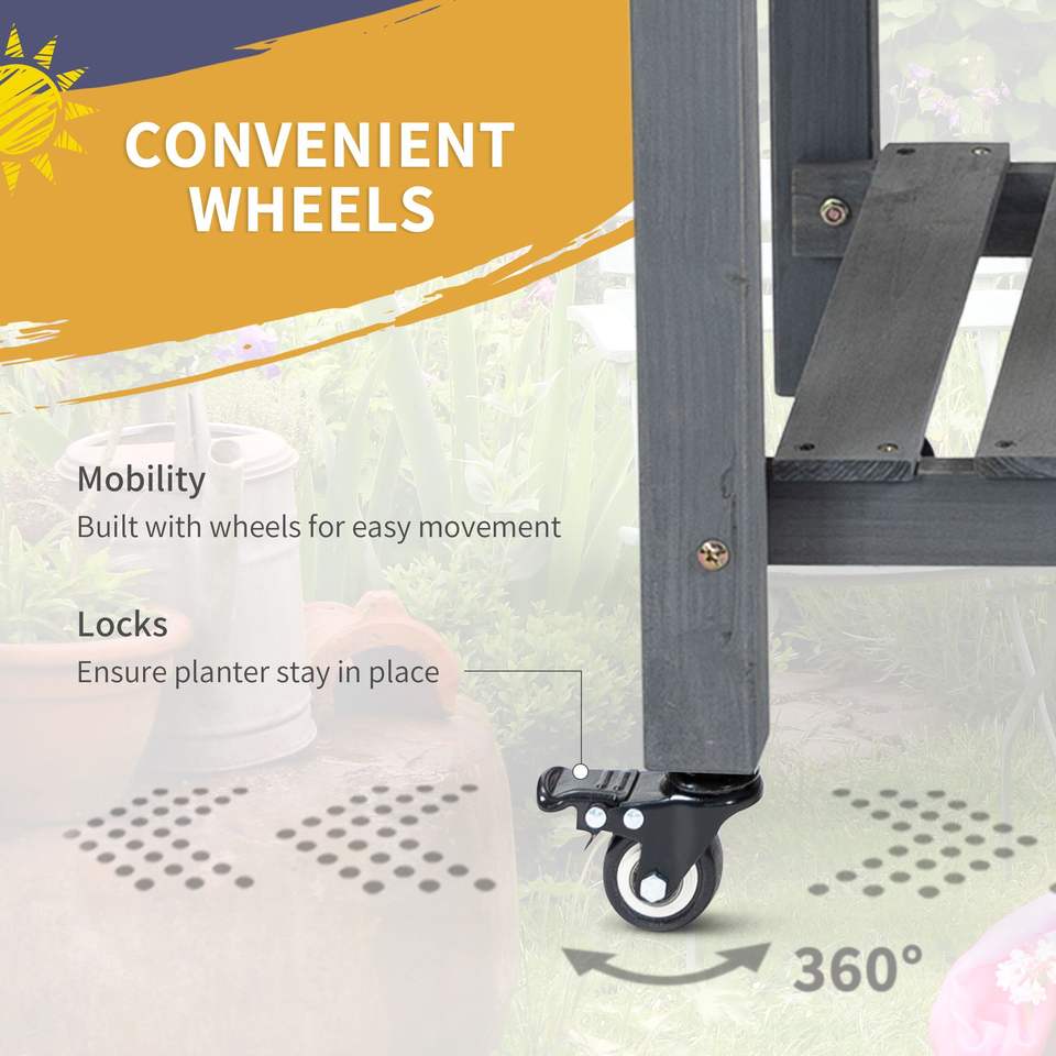 Fioriera rialzata con 8 scomparti, ripiano portaoggetti e ruote bloccabili per uso interno/esterno
