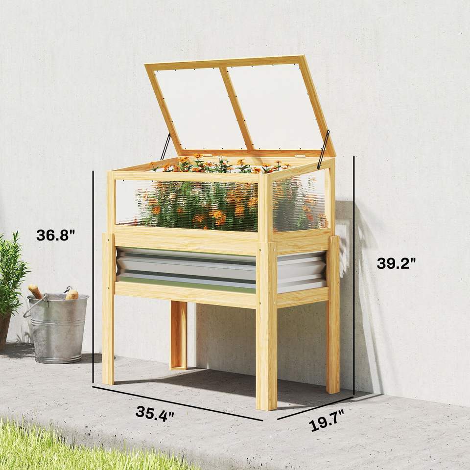 Raised Garden Bed with Mini Greenhouse Elevated Planter Box with Legs and Liner for Flowers & Vegetables Nursery Trays & Lids