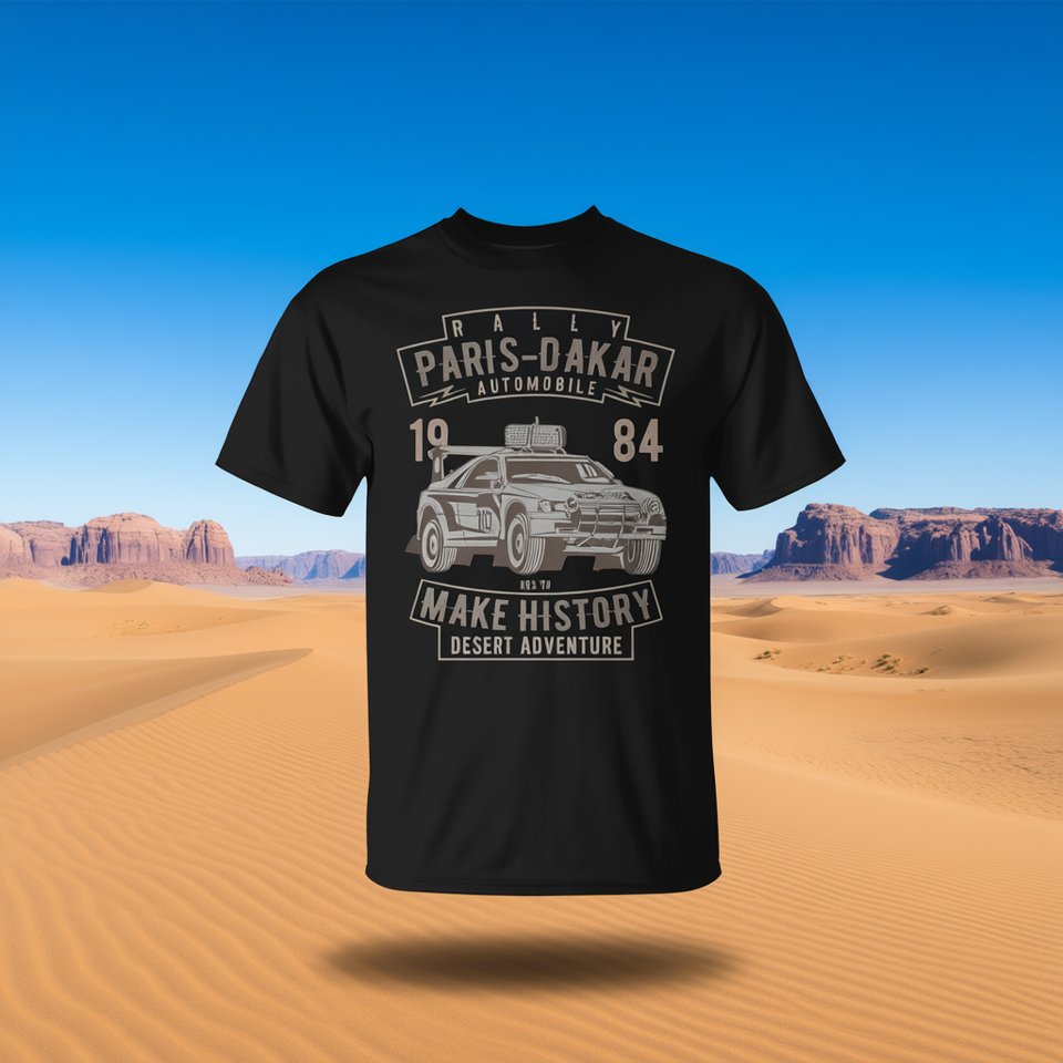 Rally Paris Dakar Automobile T-Shirt 1984 Desert Adventure Make History