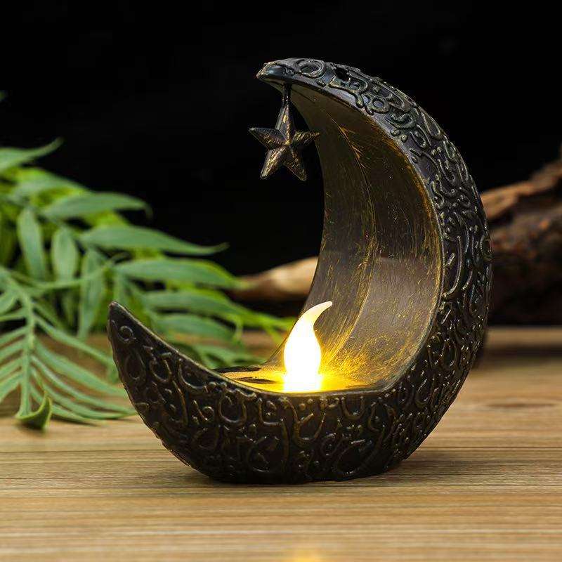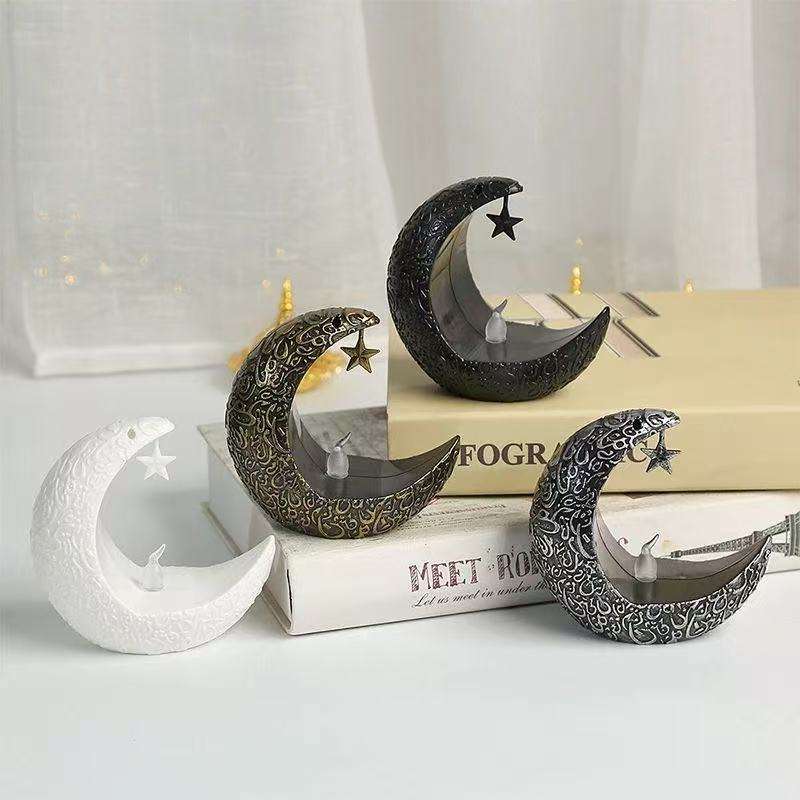 Decorazione Ramadan Lampada Luna Artigianale Ornamento Piccola Luna Illuminata Luce Stellare Eid Al-Fitr Candela LED Regalo Islamico Musulmano Popolare