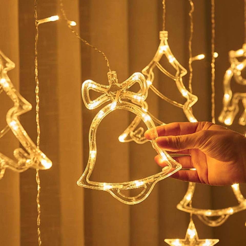 Ramadan Fairy Light Elk Bells modello albero di natale luce impermeabile per interni giardino esterno camera da letto Patio balcone bianco caldo
