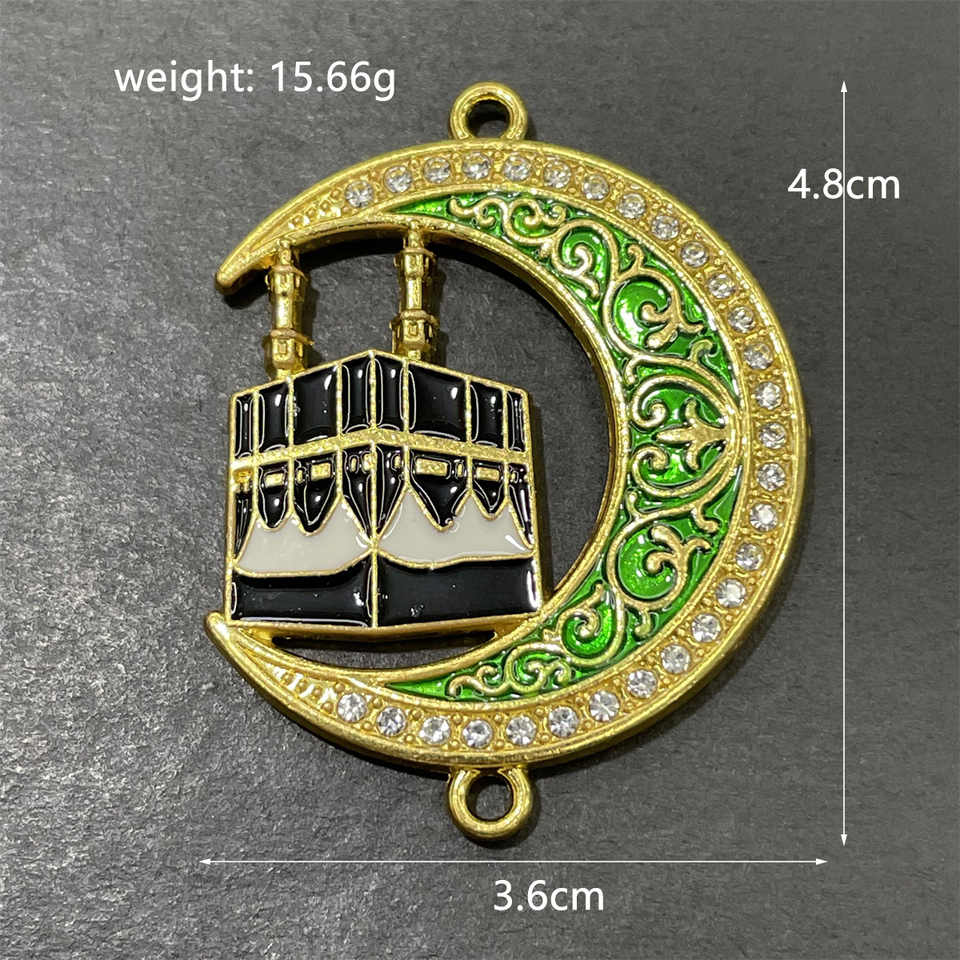 Ornamento per Ramadan, Accessorio Auto Musulmano, Pendente a Forma di Mezzaluna e Kaaba in Lega di Zinco con Nappina per Pellegrini