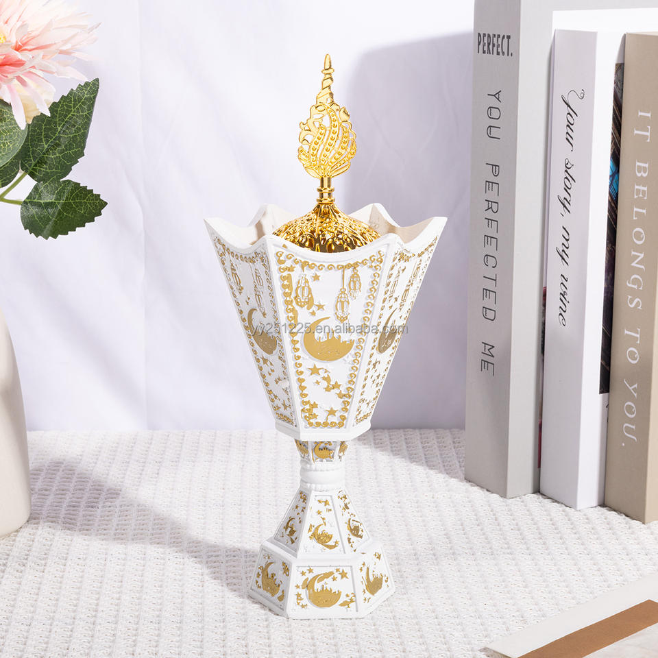 Ramadan Resin Incense Burner with Metal Lid Islamic Fall Tabletop Decorative Light for Eid Mubarak