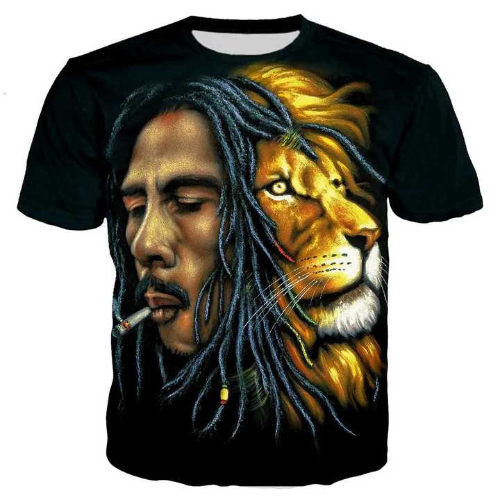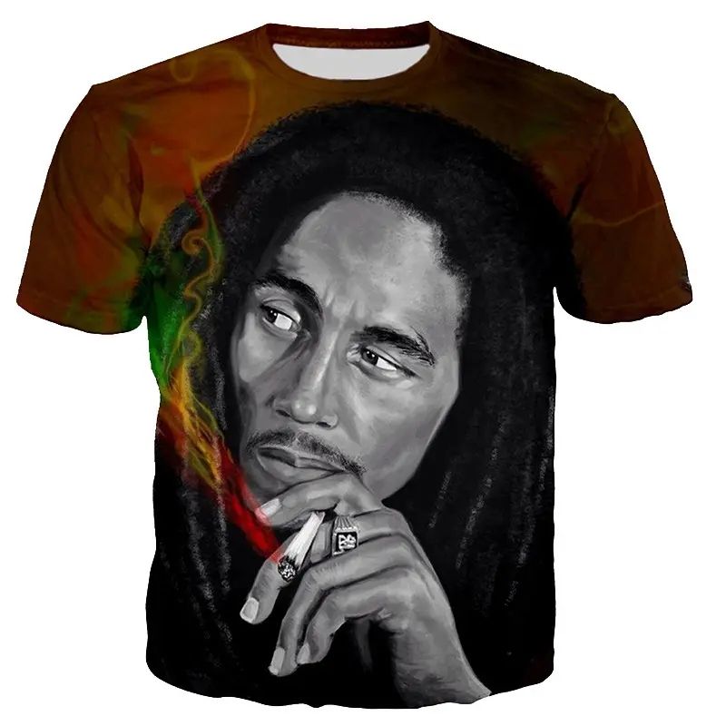 Maglietta 3D Stampata del Rapper Bob Marley per Uomo, T-Shirt Hip Hop con Stampa Digitale 3D, Abbigliamento Grafico Maschile con Stampa Integrale