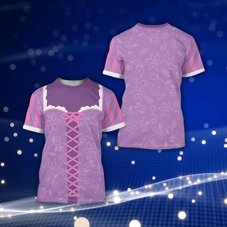 T-shirt a maniche corte ispirata a Rapunzel per costume con lacci, stampa digitale, per donne e ragazze, cosplay da fiaba