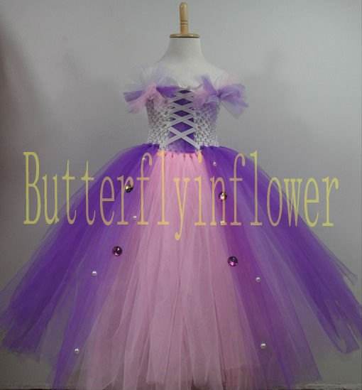 Tutù Ispirato a Rapunzel di Tangled, Vestito Lungo Viola e Rosa, Abito da Damigella per Feste
