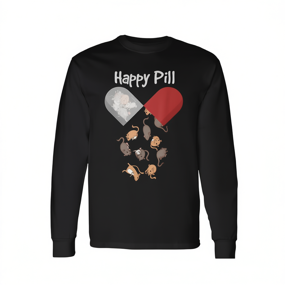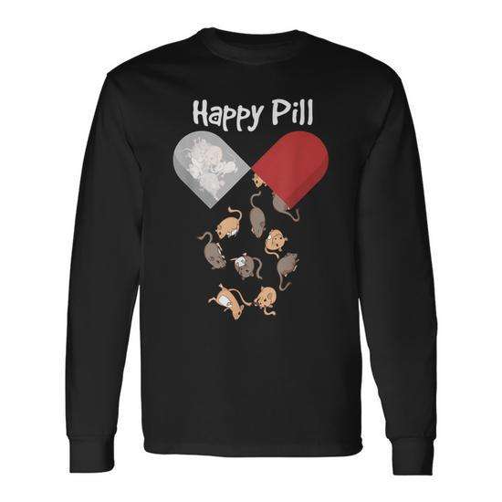 T-shirt a maniche lunghe Rat Happy Pill con design divertente di animali, abbigliamento unisex