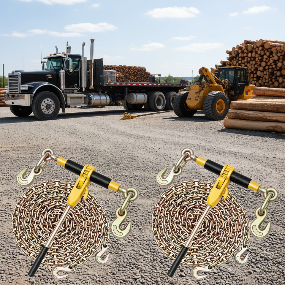 Tendicatena a cricchetto 3/8 x 20 piedi G80 in acciaio con gancio a J per traino, movimentazione e sollevamento