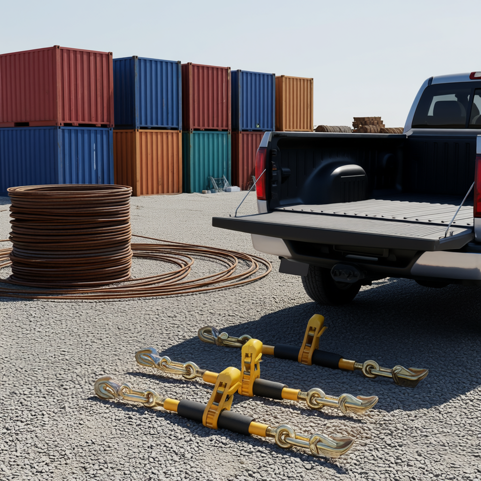 Tendicatena a cricchetto 5/16-3/8 pollici G80 con ganci, 7000 libbre, in acciaio giallo, con maniglia salva-lavoro per un fissaggio sicuro durante il trasporto