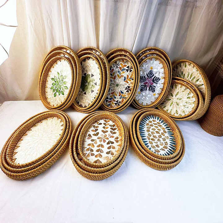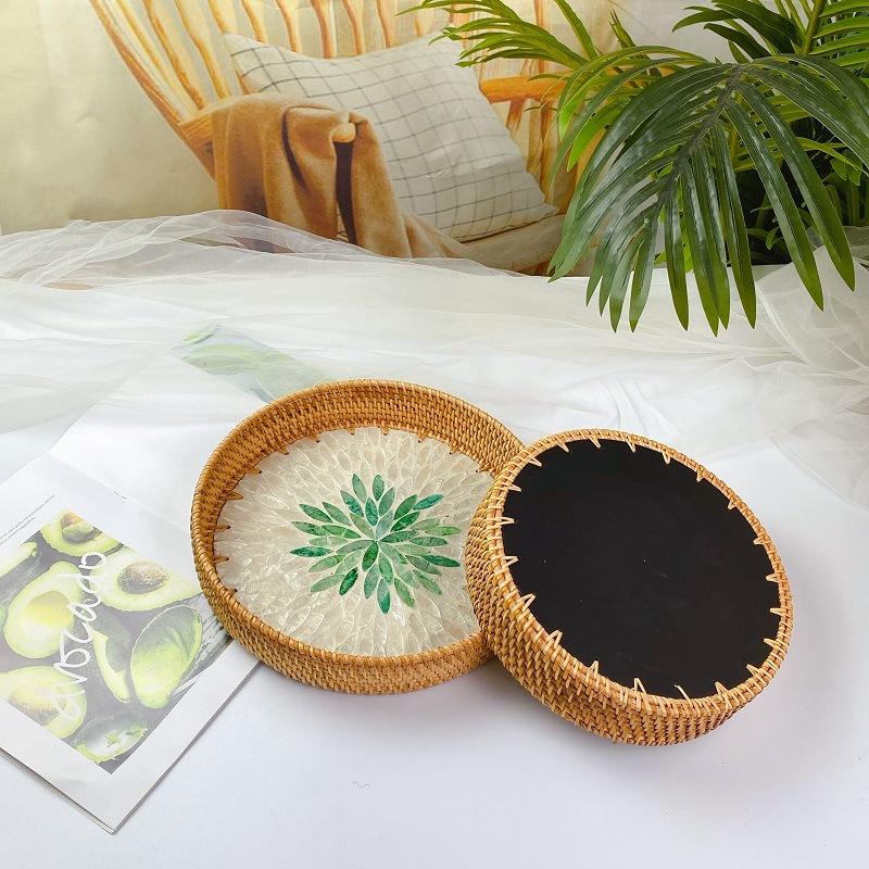 Cesto in Rattan per Decorazioni Alberghiere, Vassoio Portatile Intrecciato in Rattan Verde e Marrone per Conservazione del Pane