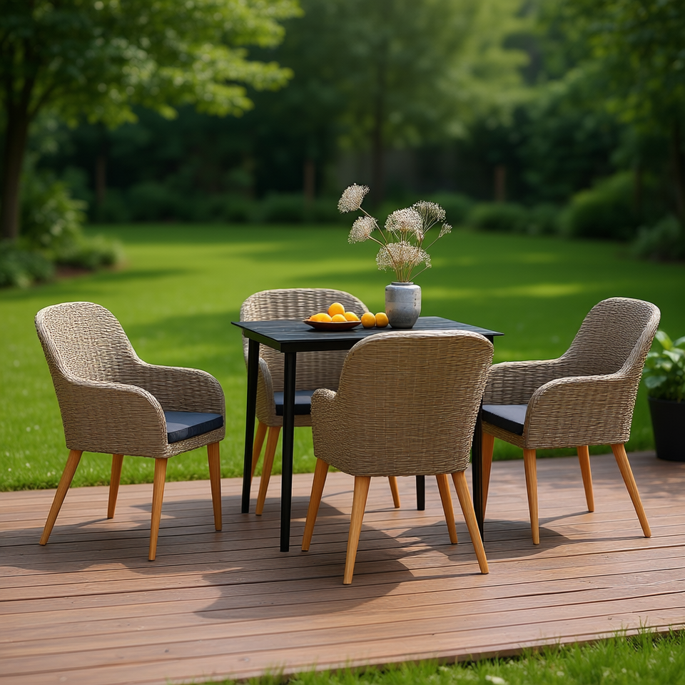 Set da Pranzo in Rattan per Giardino, 4 Posti, Arredamento da Esterno con Cuscini, Design Contemporaneo per Intrattenimento all'Aperto