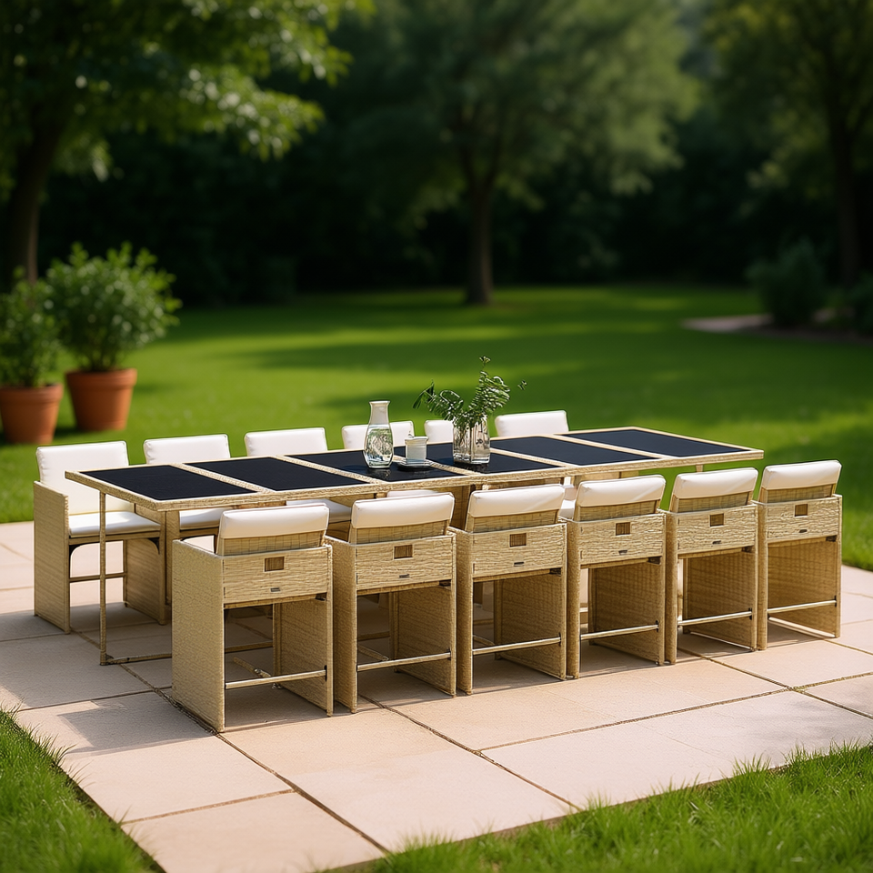Set da Pranzo da Giardino in Rattan 12 Pezzi Beige e Nero, Arredamento da Esterno Contemporaneo Resistente alle Intemperie