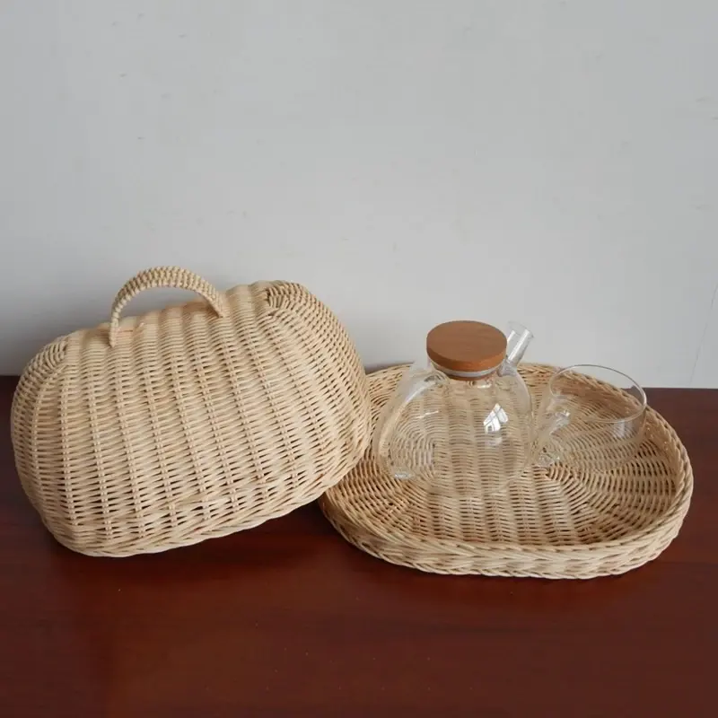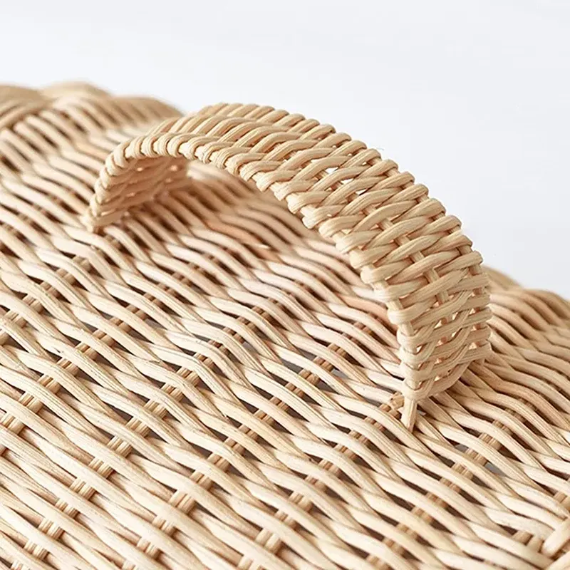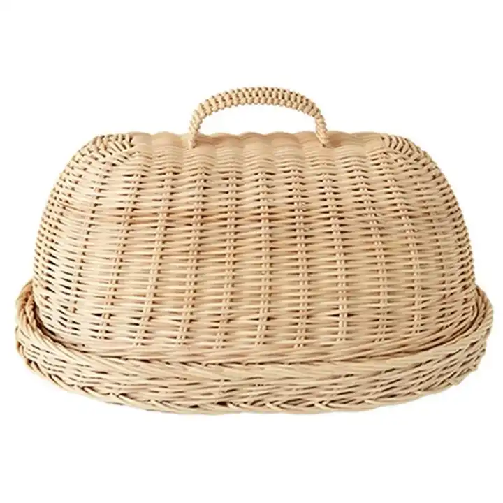 Vassoio di stoccaggio in vimini con coperchio in tessuto a mano cesti di vimini pane frutta cibo espositore per colazione scatola per cibo torta di frutta ecc