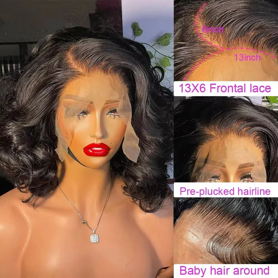 Parrucca Bob Corta in Capelli Umani Ricci Birmani Grezzi con Frontale in Pizzo HD, Super Double Drawn, Senza Colla