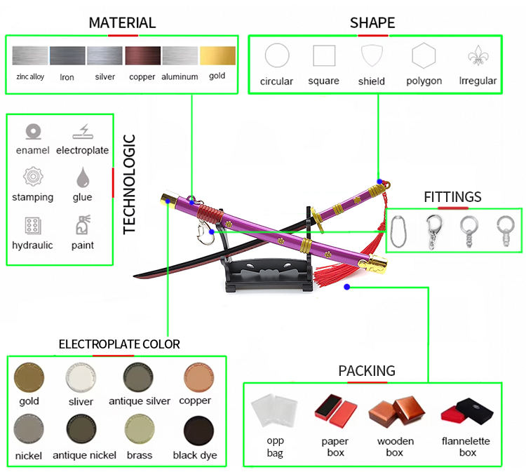 Raw-HX lega di zinco Mini spada Anime giocattolo Katana Pop up portachiavi in metallo portachiavi per un pezzo