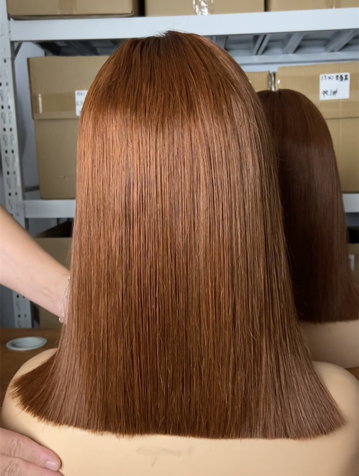Parrucca corta dritta con osso di capelli umani tempio vietnamita grezzo parrucca frontale in pizzo pieno HD senza colla parrucca frontale in pizzo di colore marrone scuro