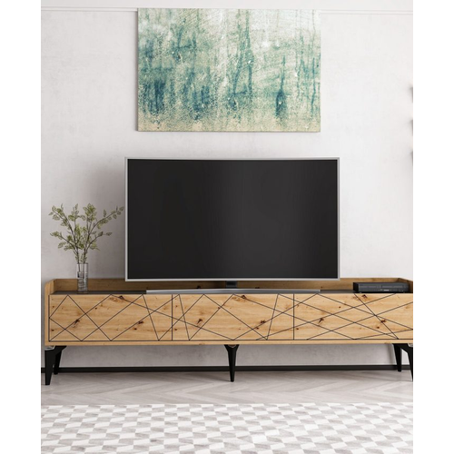 HMS 51 portaoggetti in legno massello marrone in legno massello con supporto per TV chiuso