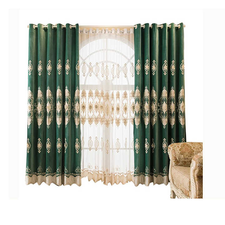 Tende pronte in velluto verde di lusso in stile europeo per la camera da letto di casa
