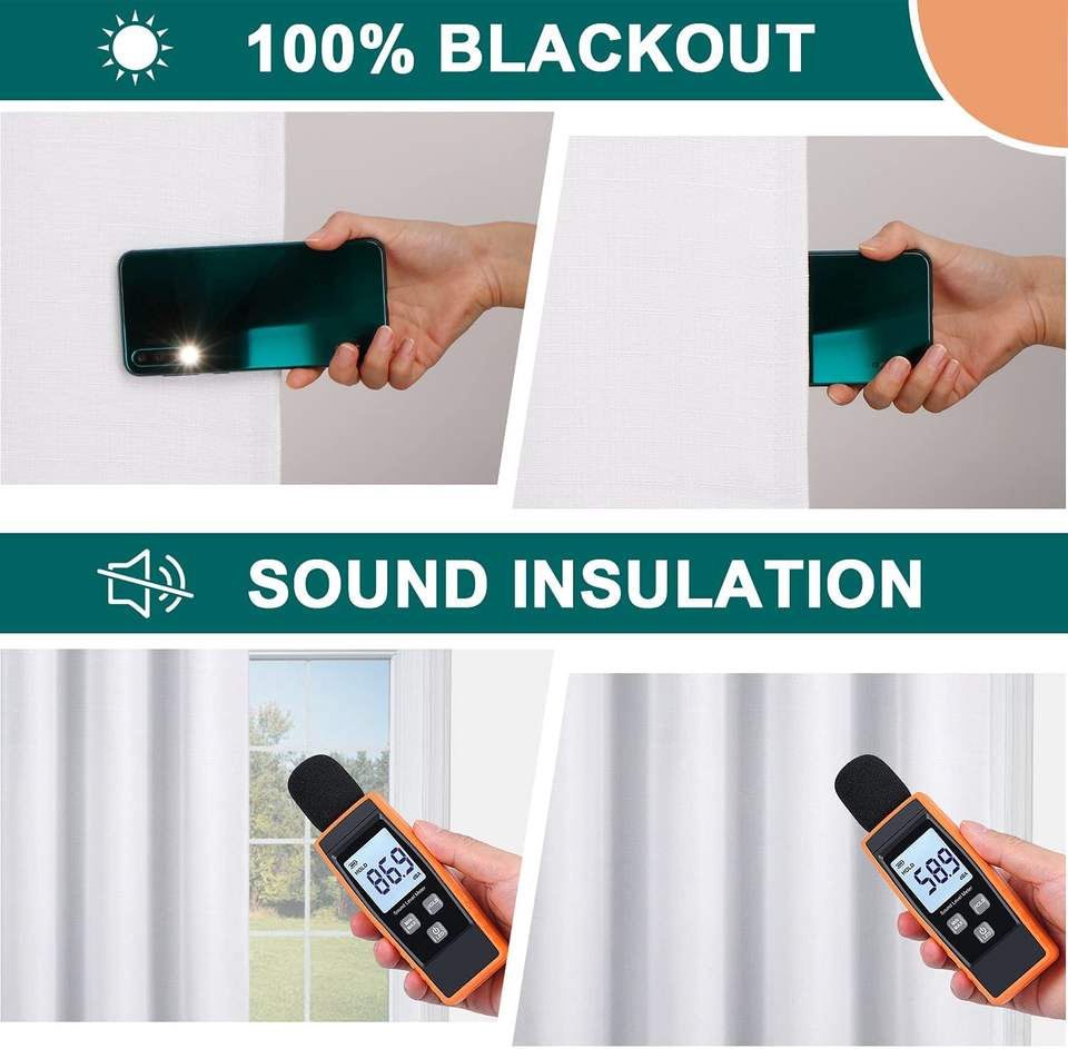 Ready Made Full Light Shading 100% Blackout Curtain White Linen Look Blackout Curtains for the Living Room Bedroom