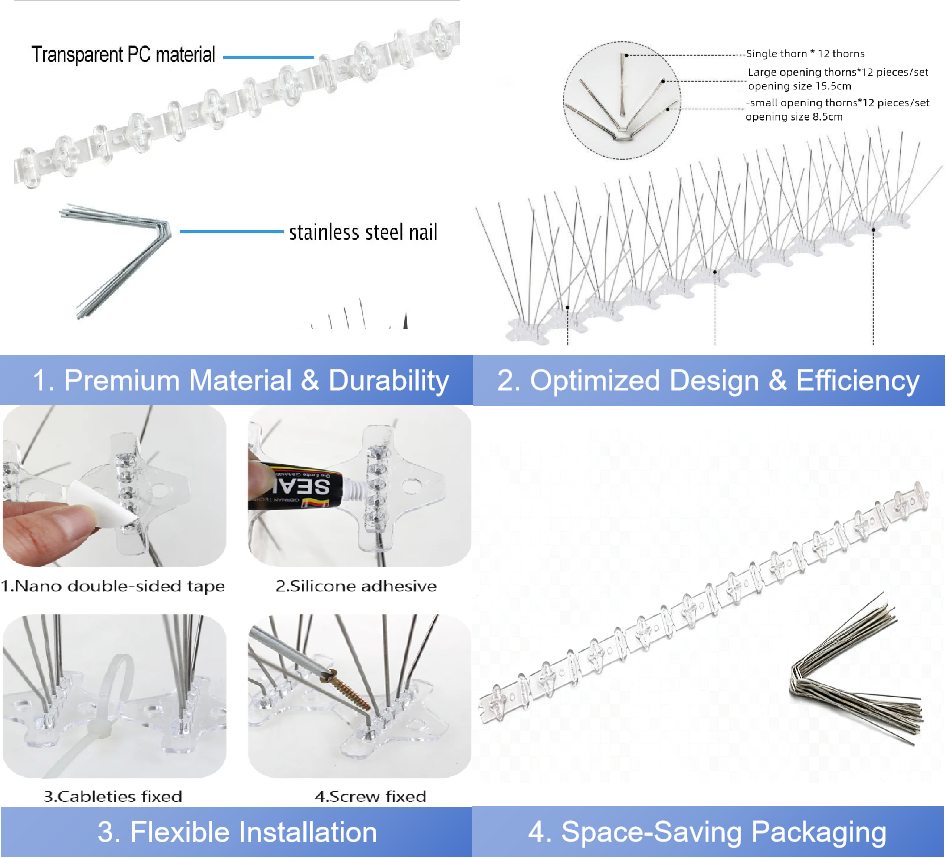 Spedizioni Veloci: Dissuasore Antivolatile Inox Ecologico Antiruggine, INNOCUO per il Controllo dei Parassiti, Facile da Montare per Tetti, Ringhiere e Superfici Ridotte