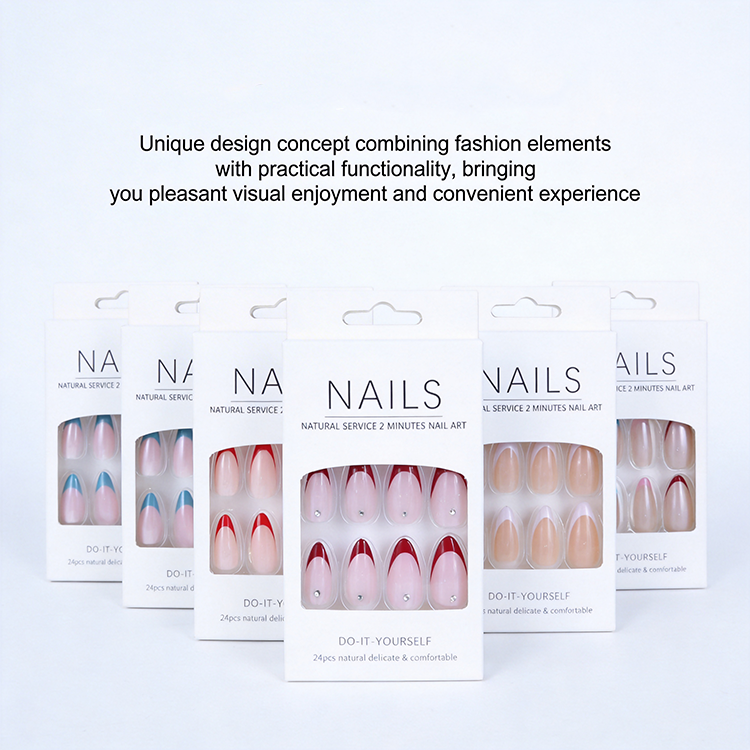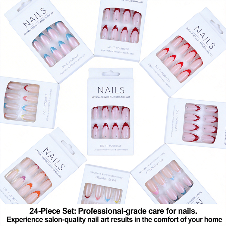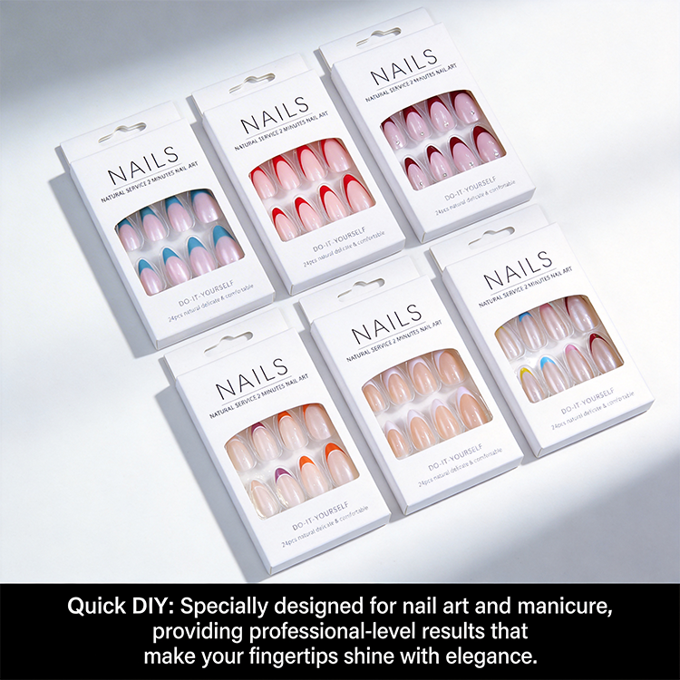 Unghie Finte Adesive in Acrilico Stile Stiletto Francese, Pronte per la Spedizione, Design Regolare a Mandorla, Materiale ABS per Dita