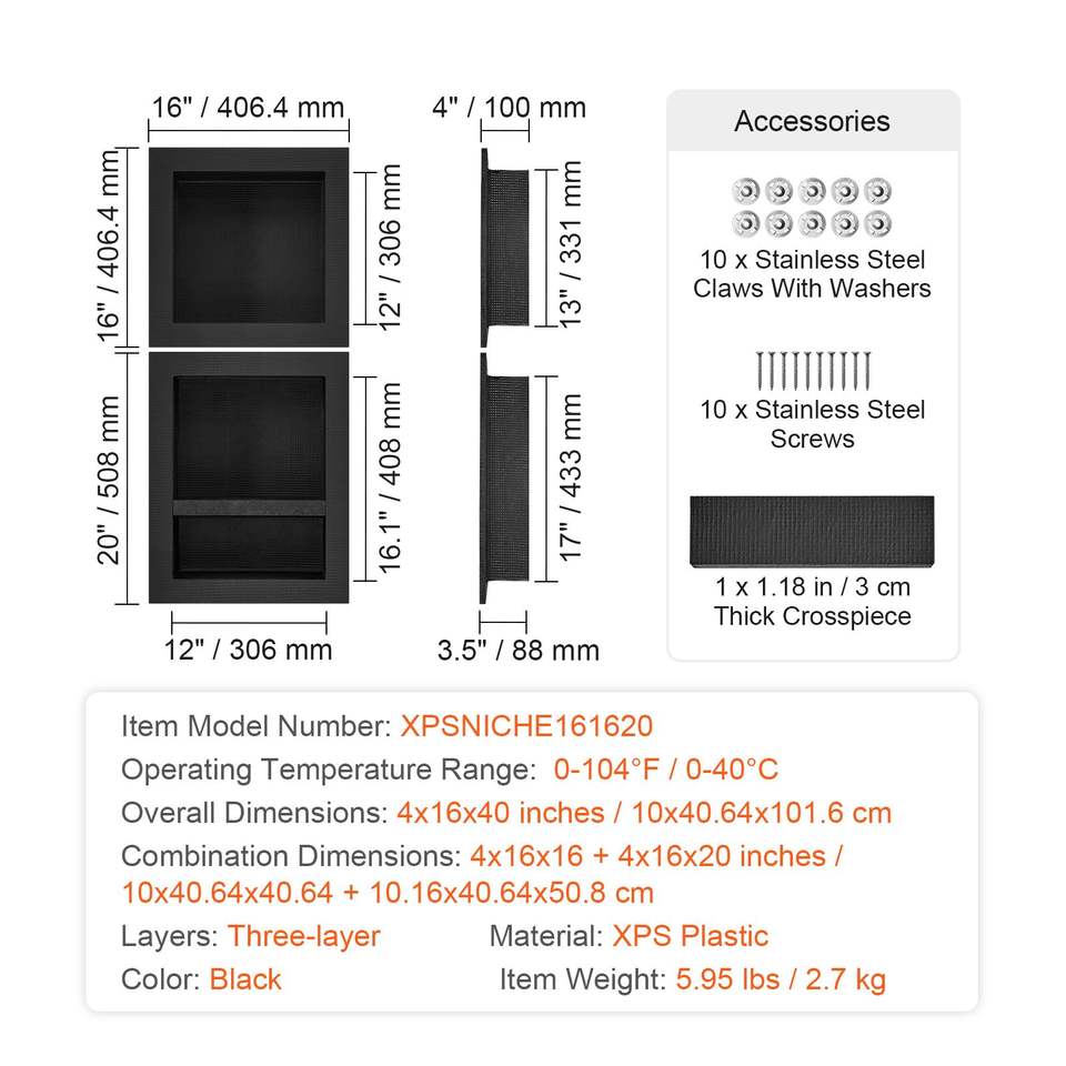 Nicchia doccia prefabbricata 40x40 cm con triplo ripiano, organizer angolare quadrato da incasso a parete, mensole sigillate per bagno 40x40 cm