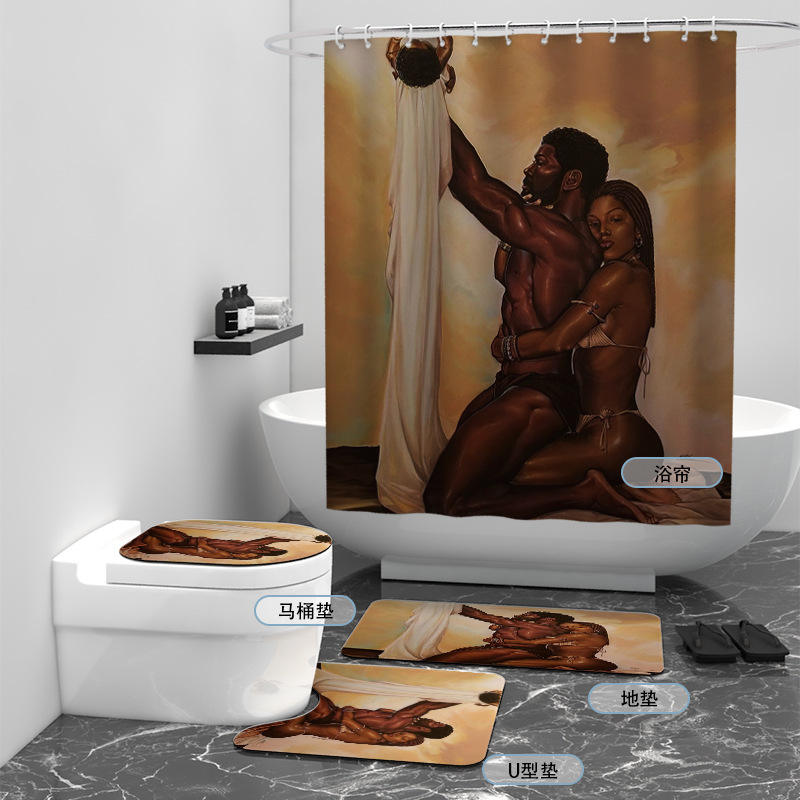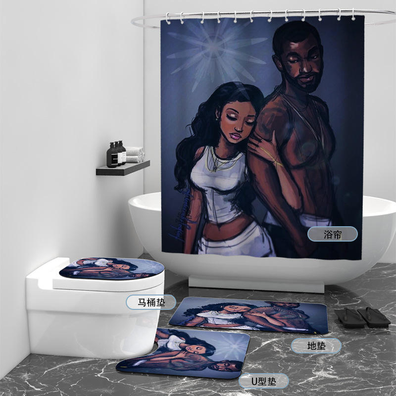 Ready to Ship African Women 3 Pcs Bathroom Rug Mat Sets 1pc Printed Shower Curtain for Bathroom Decoration
