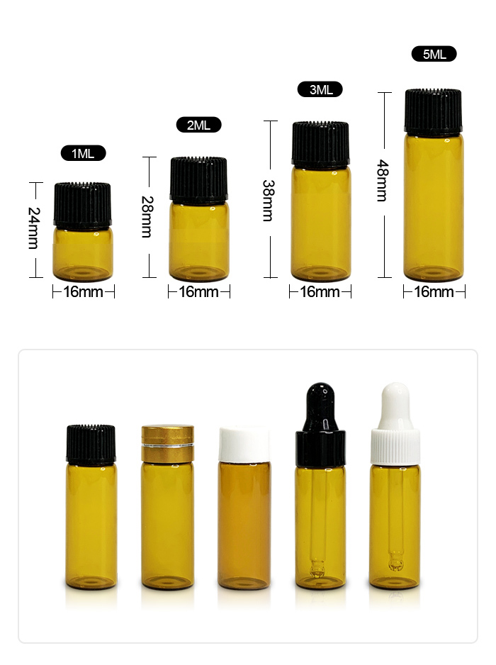 Ready to Ship Amber Clear Mini Small Glass Dropper Bottle 1ml 2ml 3ml 4ml 5ml Essential Oil Sample Bottle for Traveling