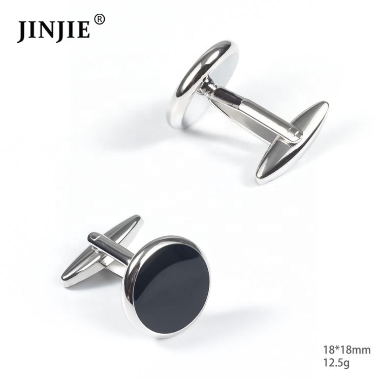 Ready to Ship Fashion Round Black Soft Enamel Mens Cufflinks and Studs Set for Tuxedo Shirts