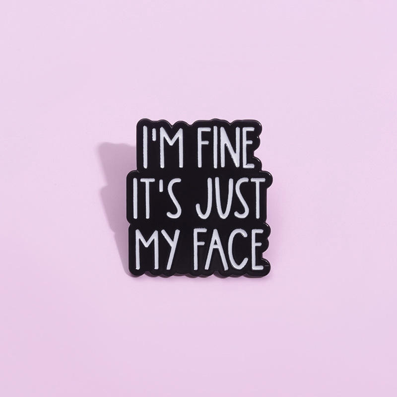 Ready to Ship I'm Fine It's Just My Face Pin Black Metal Sarcastic Enamel Pins