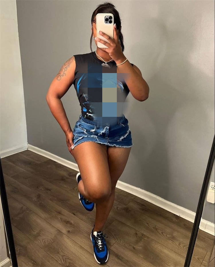 Pronto per la spedizione S-XL maglietta stampata senza maniche da donna Boutique di moda estiva 2025