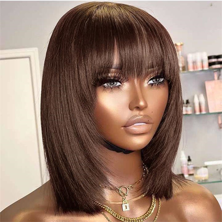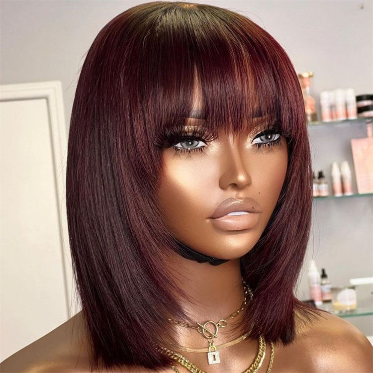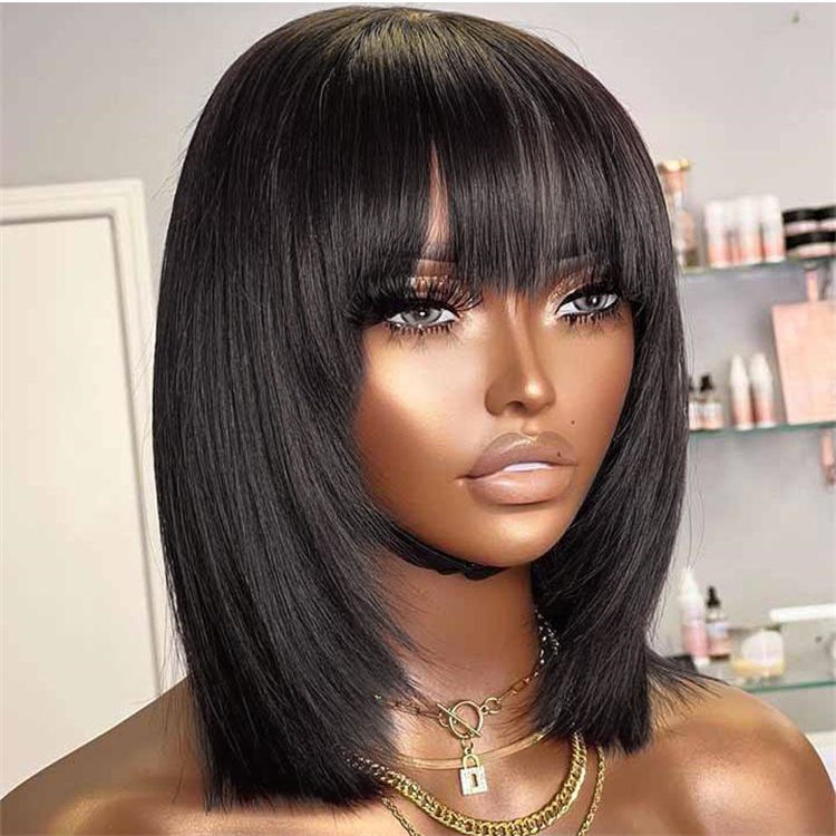 Pronto per la spedizione corta parrucca Bob 5x5 HD chiusura dritta Bob parrucca con frangia capelli umani senza colla pizzo Bob parrucche per donne nere