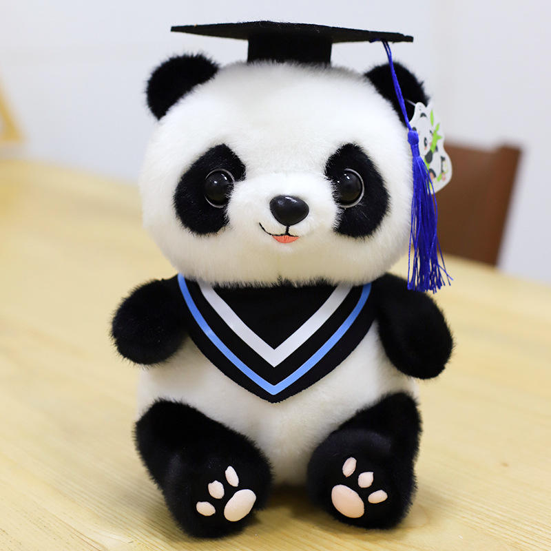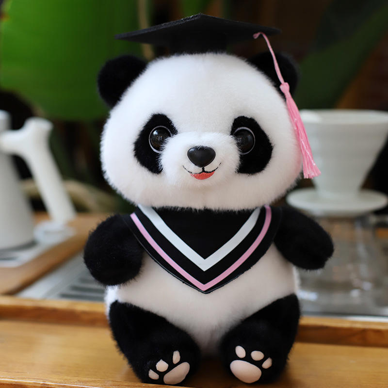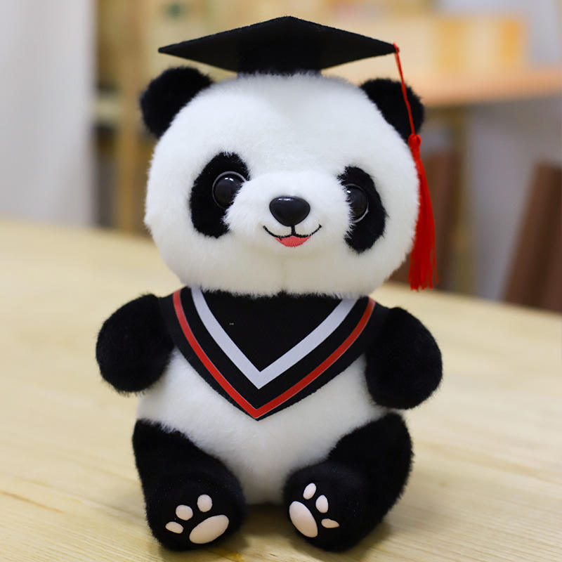 Pronto per la spedizione all'ingrosso Logo personalizzato e dimensioni del nome grazioso carino peluche imbottito morbido per il Panda di diploma scolastico