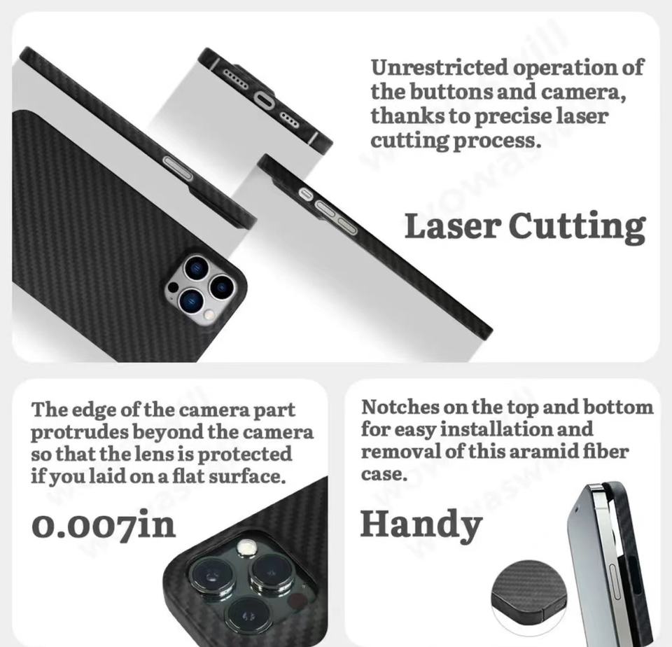 Custodia per iPhone in Vera Fibra di Carbonio per iPhone 15 14 13 12 Pro Max, Cover Alla Moda in Fibra di Aramide