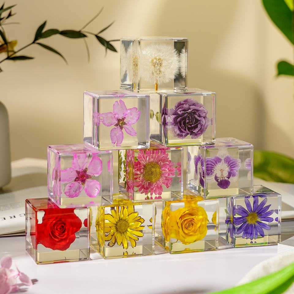 Nome del prodotto:Cubo Decorativo con Fiori in Resina