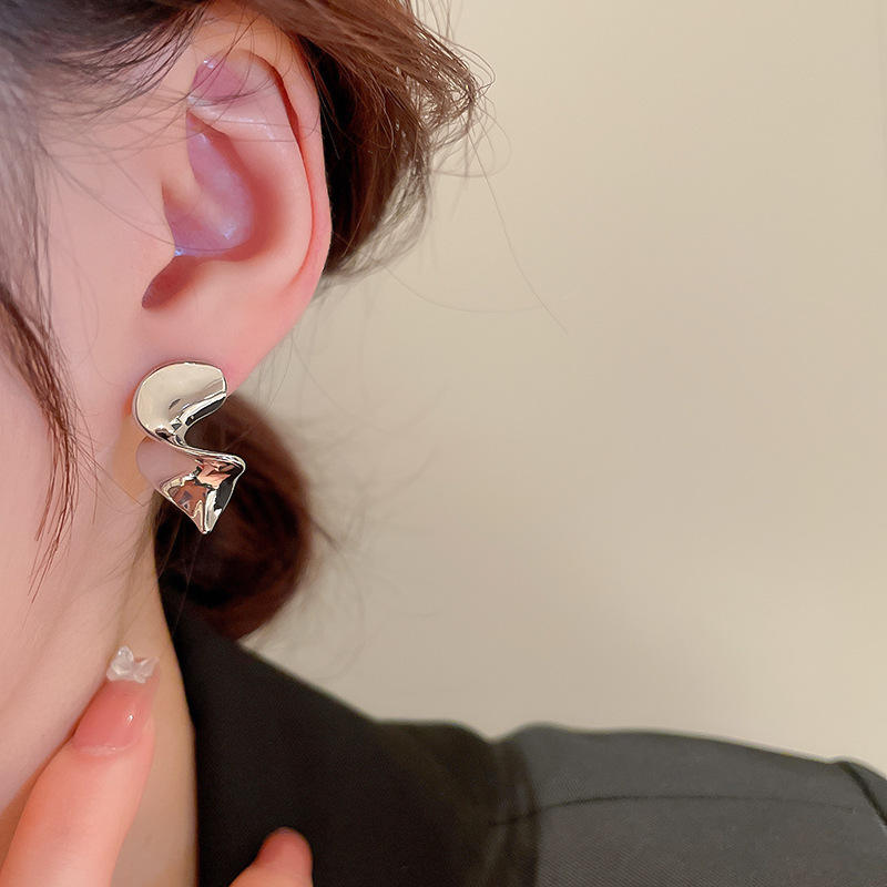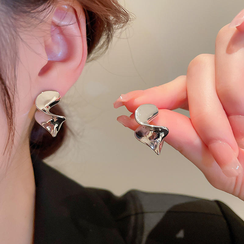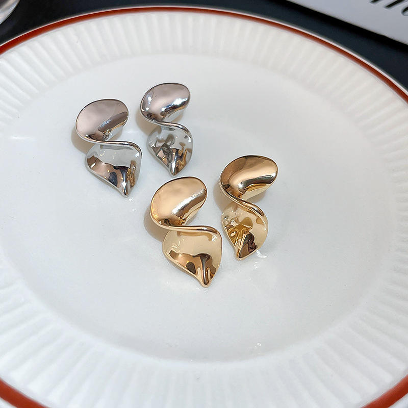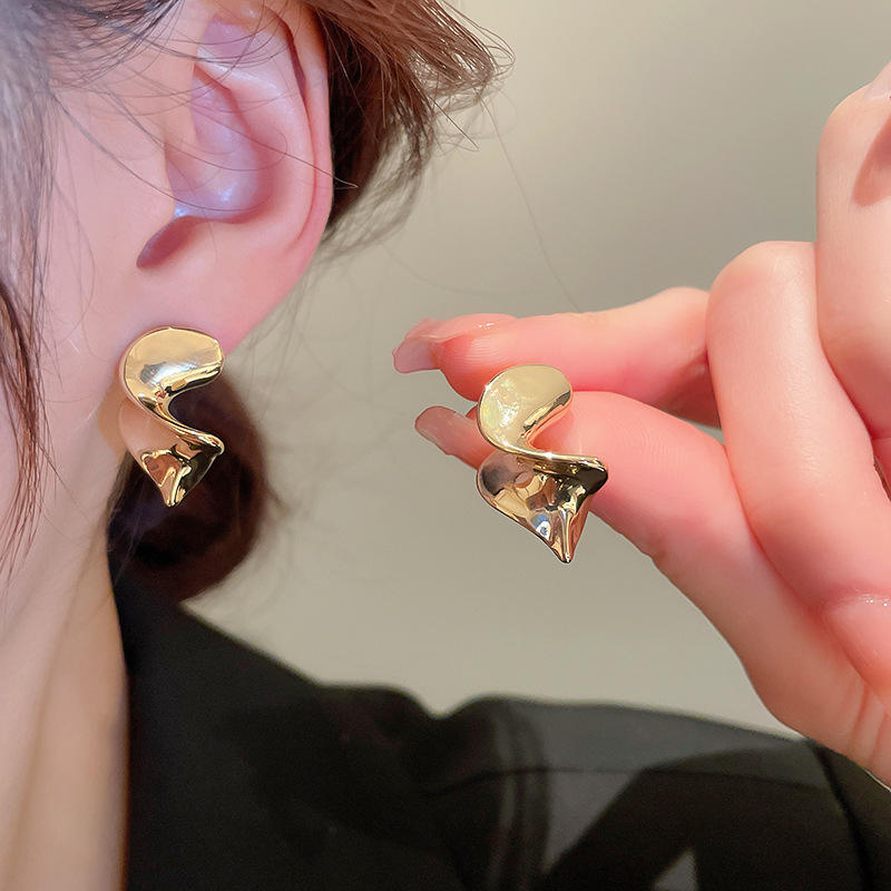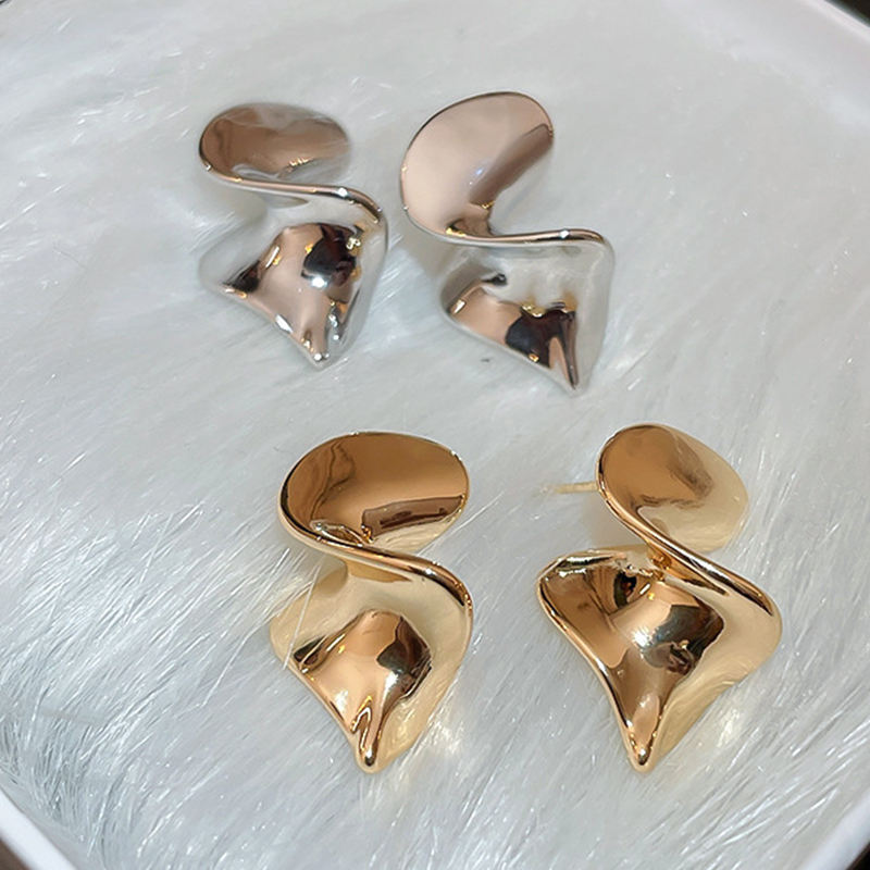 Orecchini minimali intrecciati irregolari con ago in argento placcato oro reale orecchini artigianali in metallo pesante orecchini per pendolari di moda