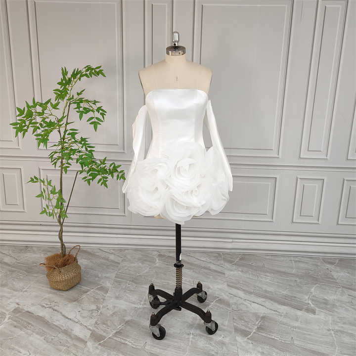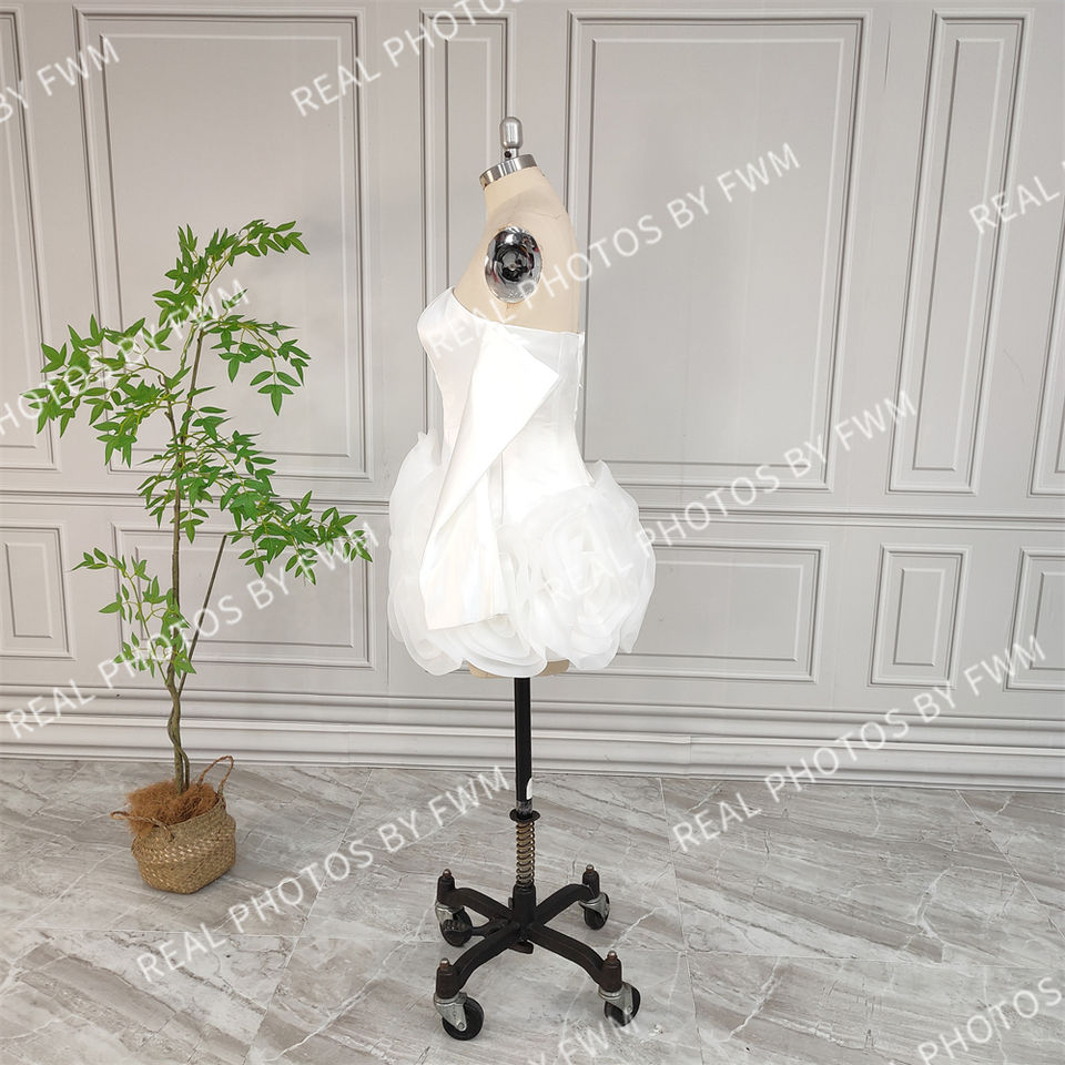 Foto reali di alta qualità con volant Organza Mini abito da sposa per sposa 2024 elegante raso corto fidanzamento dopo abito da festa