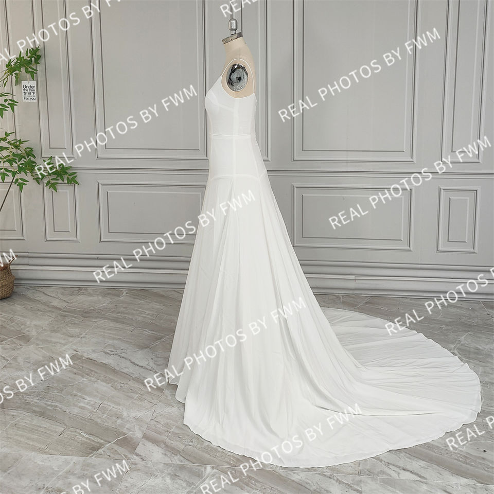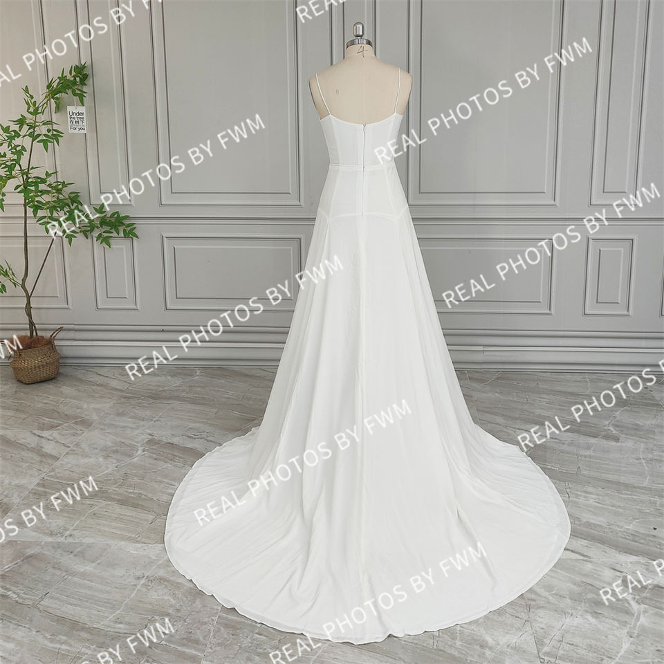 Real Photos High Quality Simple Spaghetti Straps Soft Satin Wedding Dress for Bride Women Bridal Gown New Design