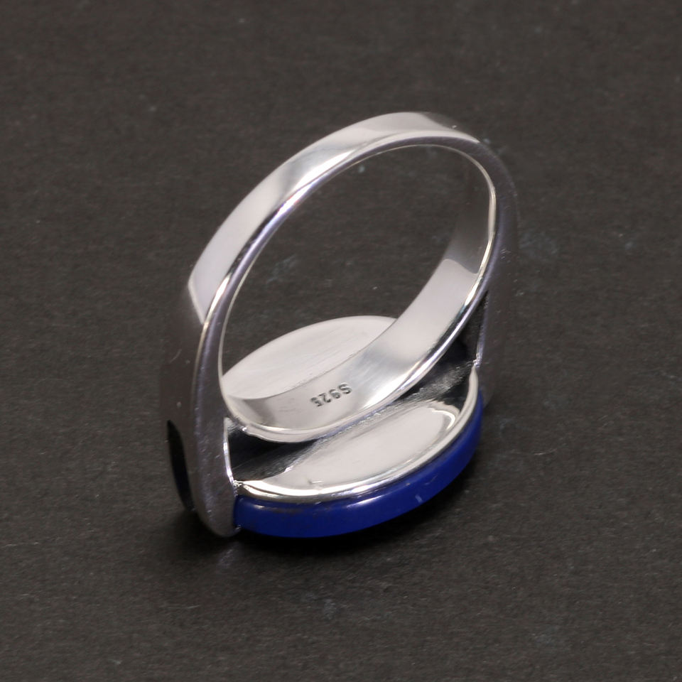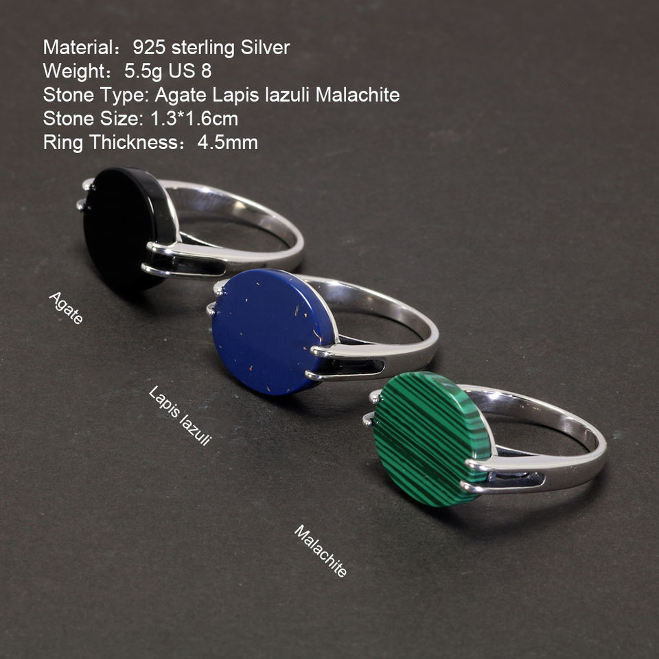Real Pure 925 Sterling Silver Turkish Ring for Men and Women Prong Setting Black Agate Lapis Lazuli Malachite Cute Jewelry